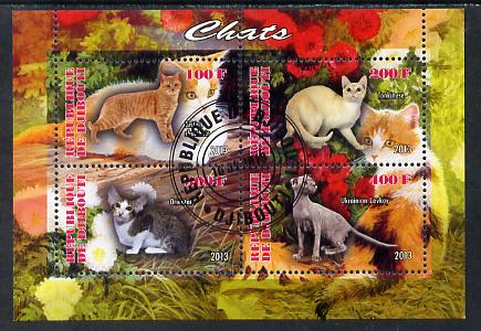 Djibouti 2013 Domestic Cats #1 perf sheetlet containing 4 values cto used