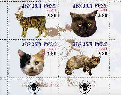 Estonia (Abruka) 2000 Domestic Cats #2 perf sheetlet of 4 with Scouts Logo in bottom margin unmounted mint