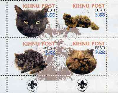 Estonia (Kihnu) 2000 Domestic Cats #1 perf sheetlet of 4 with Scouts Logo in bottom margin unmounted mint