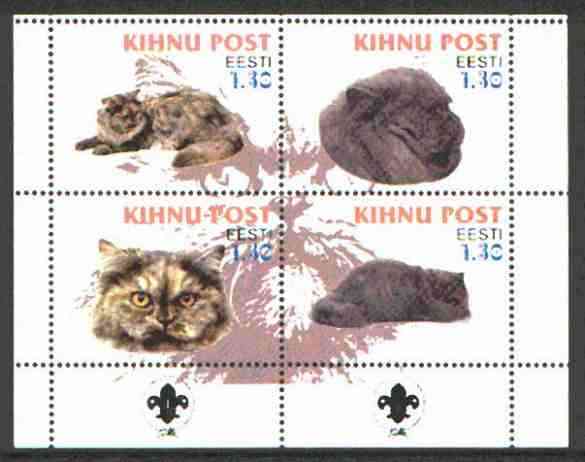 Estonia (Kihnu) 2000 Domestic Cats #3 perf sheetlet of 4 with Scouts Logo in bottom margin unmounted mint
