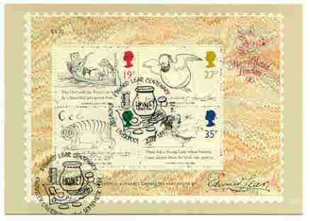 Great Britain 1988 Death Centenary of Edward Lear (Artist & Author) m/sheet on PHQ card very fine used with first day cancels