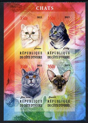 Ivory Coast 2013 Domestic Cats #1 imperf sheetlet containing 4 values unmounted mint
