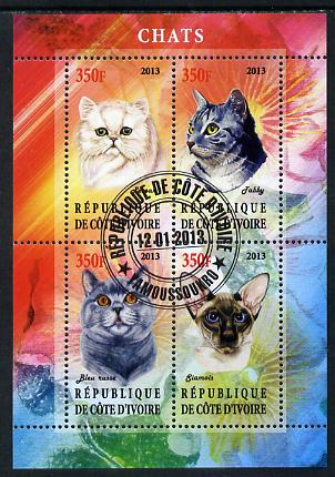 Ivory Coast 2013 Domestic Cats #1 perf sheetlet containing 4 values fine cto used