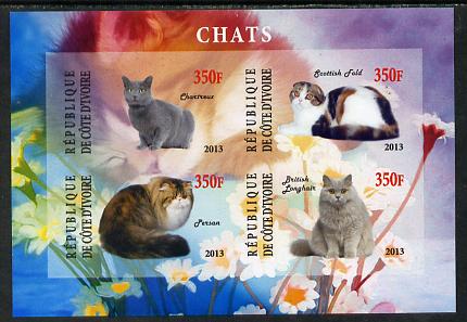 Ivory Coast 2013 Domestic Cats #2 imperf sheetlet containing 4 values unmounted mint