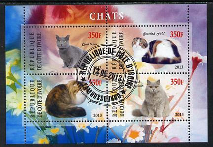 Ivory Coast 2013 Domestic Cats #2 perf sheetlet containing 4 values fine cto used