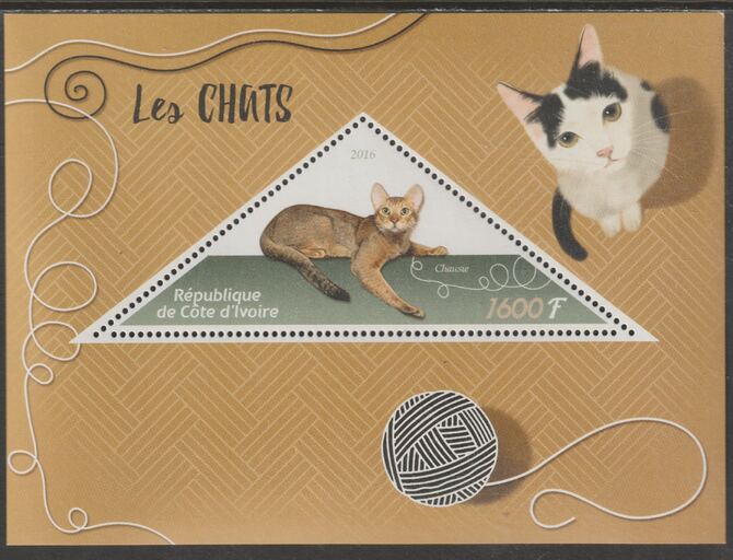 Ivory Coast 2016,Domestic Cats perf deluxe sheet containing one triangular value unmounted mint