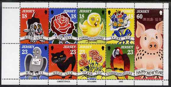 Jersey 1995 Greetings Stamps booklet pane of 9 unmounted mint, SG 684b