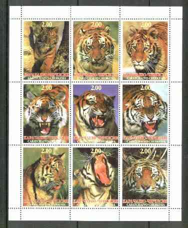Karachaevo-Cherkesia Republic 1999 Tigers sheetlet containing 9 values unmounted mint