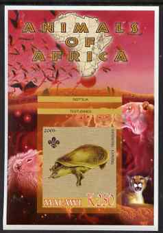 Malawi 2005 Animals of Africa - Turtle imperf m/sheet with Scout Logo & Lions in background, unmounted mint