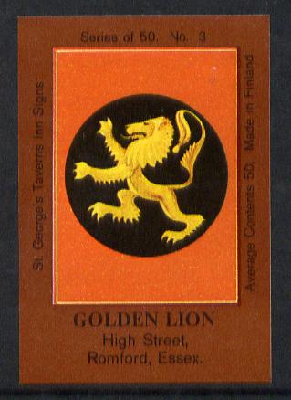 Match Box Labels - Golden Lion (No.3 from a series of 50 Pub signs) dark brown background, very fine unused condition (St George's Taverns)