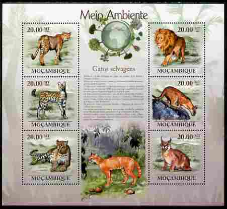Mozambique 2010 The Environment - Wild Cats large perf sheetlet containing 6 vaues unmounted mint Michel 3566-71