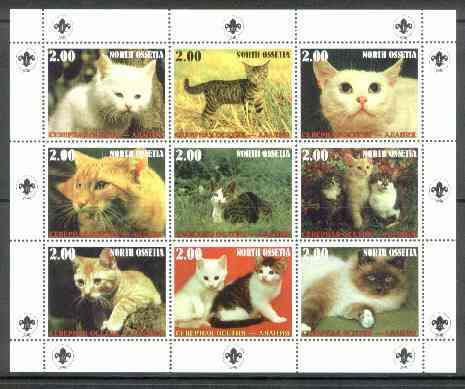 North Ossetia Republic 1999 Cats perf sheetlet containing 9 values (with Scout Logo in margins) unmounted mint