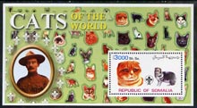 Somalia 2002 Domestic Cats of the World perf s/sheet #01 with Scout Logo & Baden Powell in background, unmounted mint