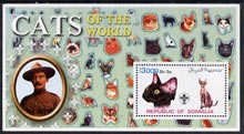 Somalia 2002 Domestic Cats of the World perf s/sheet #10 with Scout Logo & Baden Powell in background, unmounted mint
