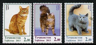 Tadjikistan 2013 Domestic Cats perf set of 3 values unmounted mint