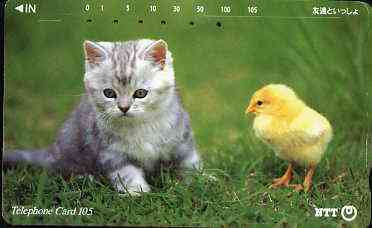 Telephone Card - Japan 105 units phone card showing Kitten with chick (card 111-062)