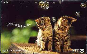 Telephone Card - Japan 105 units phone card showing two Kittens with bubbles (card 111-036)