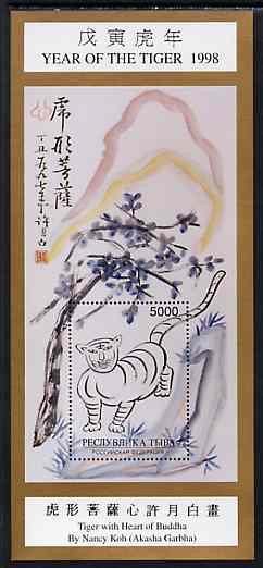 Touva 1998 Year of the Tiger (White Tiger with Heart of Buddha) unmounted mint souvenir sheet