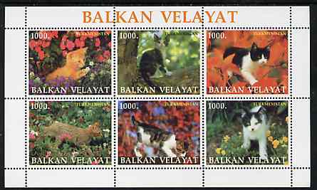Turkmenistan (Balkan Velayat) 1999 ? Domestic Cats perf sheetlet containing 6 values unmounted mint