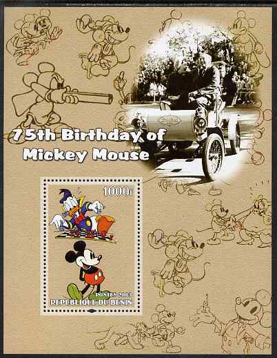 Benin 2003 75th Birthday of Mickey Mouse #08 perf s/sheet also showing Walt Disney & Chess unmounted mint. Note this item is privately produced and is offered purely on its thematic appeal