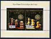 Congo 2003 Chess perf sheetlet containing 2 x 750 CF values with embossed gold background & Rotary Logo, unmounted mint