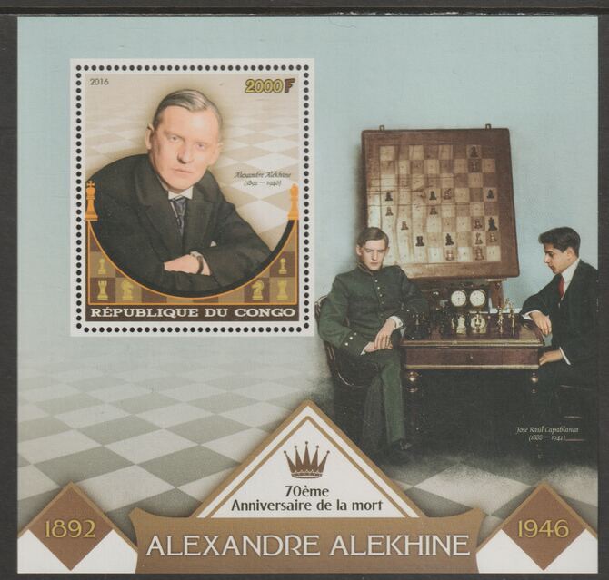 Congo 2016 Alexandre Alekhine - Chess #2 perf sheet containing one value unmounted mint