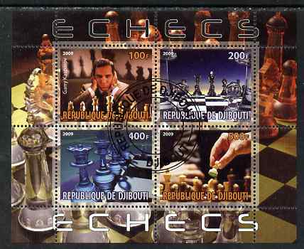 Djibouti 2009 Chess - Garry Kasparov perf sheetlet containing 4 values fine cto used