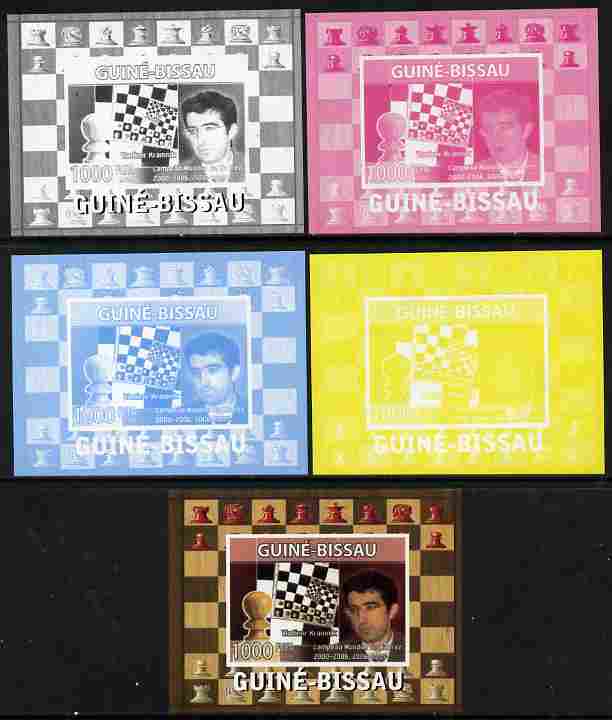 Guinea - Bissau 2008 Chess Champions - Vladimir Kramnik individual deluxe sheetlet - the set of 5 imperf progressive proofs comprising the 4 individual colours plus all 4-colour composite, unmounted mint