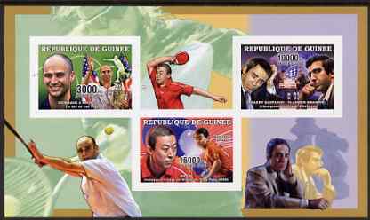 Guinea - Conakry 2006 Sporting Stars imperf sheetlet containing 3 values (Agassi, Kasparov & Ma Lin) unmounted mint Yv 2700-02