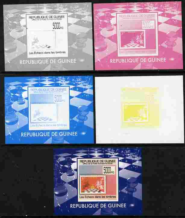 Guinea - Conakry 2009 Chess on Stamps #6 individual deluxe sheetlet - the set of 5 imperf progressive proofs comprising the 4 individual colours plus all 4-colour composite, unmounted mint