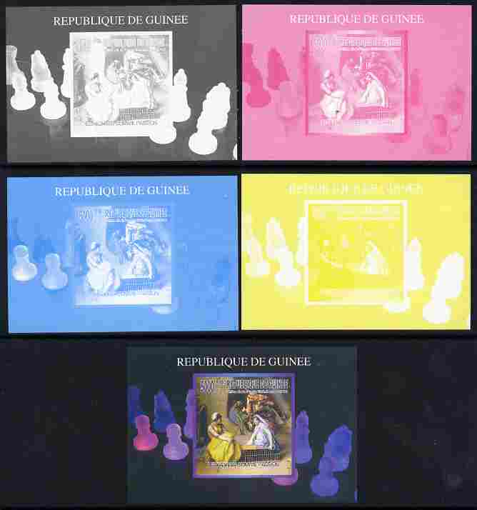Guinea - Conakry 2010 The Passion of Chess #02 individual deluxe sheet - the set of 5 imperf progressive proofs comprising the 4 individual colours plus all 4-colour composite, unmounted mint