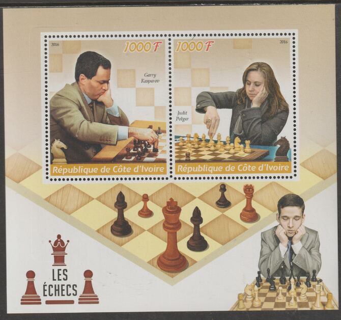 Ivory Coast 2016 Chess perf sheet containing two values unmounted mint