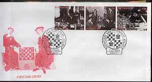Kyrgyzstan 2000 History of Chess #1 perf strip of 3 on illustrated cover with special Chess cancellation