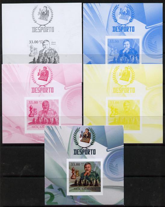 Mozambique 2010 Chess Players - Anatoly Karpov m/sheet - the set of 5 imperf progressive proofs comprising the 4 individual colours plus all 4-colour composite, unmounted mint