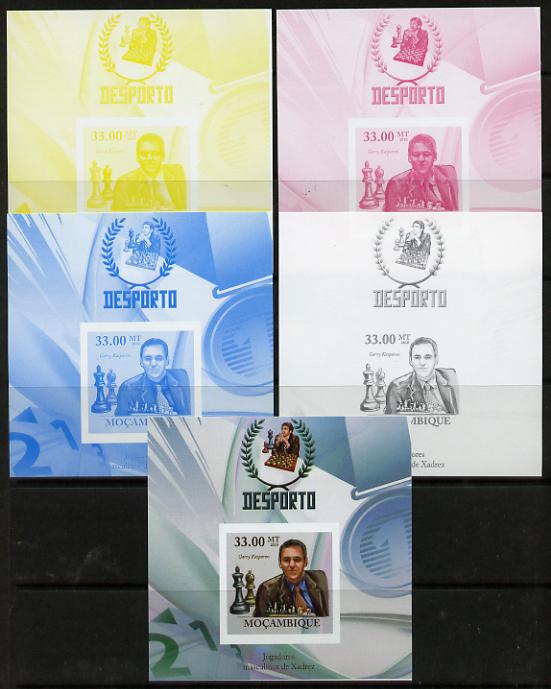 Mozambique 2010 Chess Players - Garry Kaspapov m/sheet - the set of 5 imperf progressive proofs comprising the 4 individual colours plus all 4-colour composite, unmounted mint