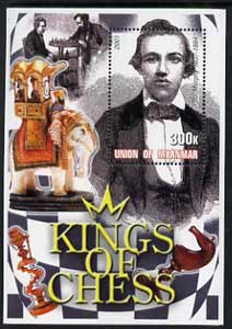 Myanmar 2002 Kings of Chess #02 (Paul Morphy) perf m/sheet unmounted mint