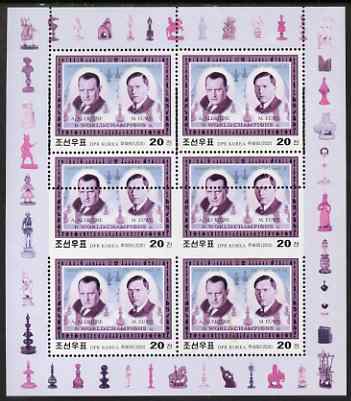 North Korea 2001 Chess World Champions 20ch (Alekhine & Euwe) perf sheetlet of 6 with yellow omitted PLUS spectacular misplacement of perfs, a stunning double variety