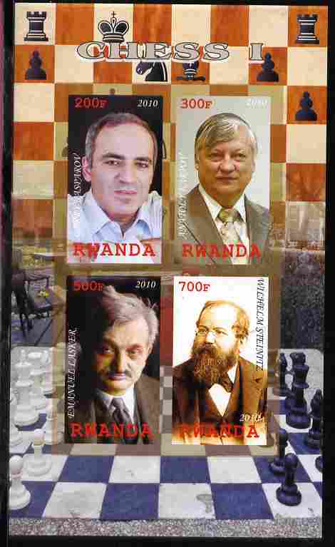 Rwanda 2010 Chess Masters #1 imperf sheetlet containing 4 values unmounted mint