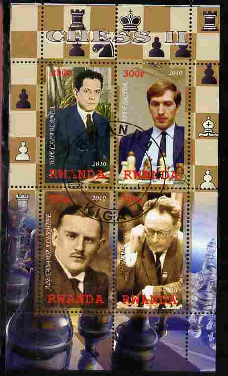 Rwanda 2010 Chess Masters #2 perf sheetlet containing 4 values fine cto used