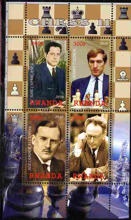 Rwanda 2010 Chess Masters #2 perf sheetlet containing 4 values unmounted mint