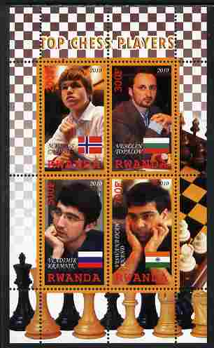 Rwanda 2010 Top Chess Players #1 perf sheetlet containing 4 values unmounted mint