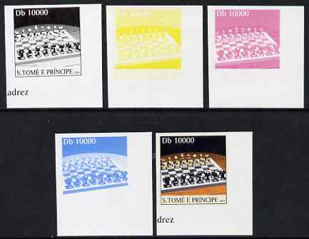 St Thomas & Prince Islands 2004 Chess 10,000 Db the set of 5 imperf progressive proofs comprising the 4 individual colours plus all 4-colour composite, unmounted mint
