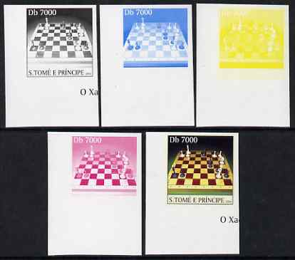 St Thomas & Prince Islands 2004 Chess 7,000 Db the set of 5 imperf progressive proofs comprising the 4 individual colours plus all 4-colour composite, unmounted mint