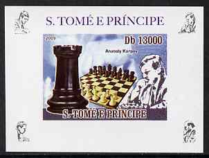 St Thomas & Prince Islands 2009 Chess Grand Masters #2 - Anatoly Karpov individual imperf deluxe sheet unmounted mint. Note this item is privately produced and is offered purely on its thematic appeal