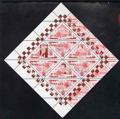 Touva 1998 33rd Chess Olympiad overprint #3 on 1994 National Theatre (2.00 on 150r red) triangular perf sheet of 8 unmounted mint