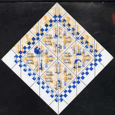 Touva 1998 33rd Chess Olympiad overprint #4 on 1994 Camels (2.00 on 200r yellow) triangular perf sheet of 8 unmounted mint