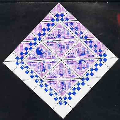 Touva 1998 33rd Chess Olympiad overprint #4 on 1994 National Art (2.00 on 600r purple) triangular perf sheet of 8 unmounted mint
