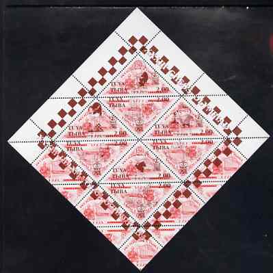 Touva 1998 33rd Chess Olympiad overprint #5 on 1994 National Theatre (2.00 on 150r red) triangular perf sheet of 8 unmounted mint