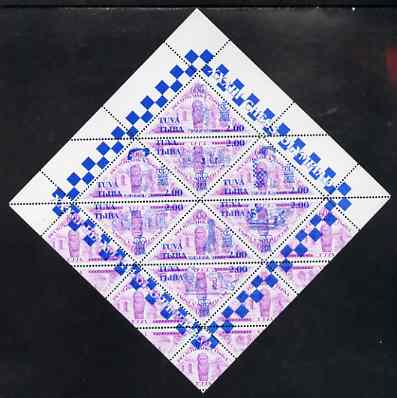 Touva 1998 33rd Chess Olympiad overprint #6 on 1994 National Art (2.00 on 600r purple) triangular perf sheet of 8 unmounted mint