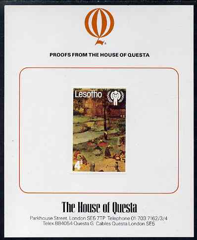 Lesotho 1979 International Year of the Child 4s (Detail of painting by Brueghel) imperf proof mounted on House of Questa proof card, as SG 379